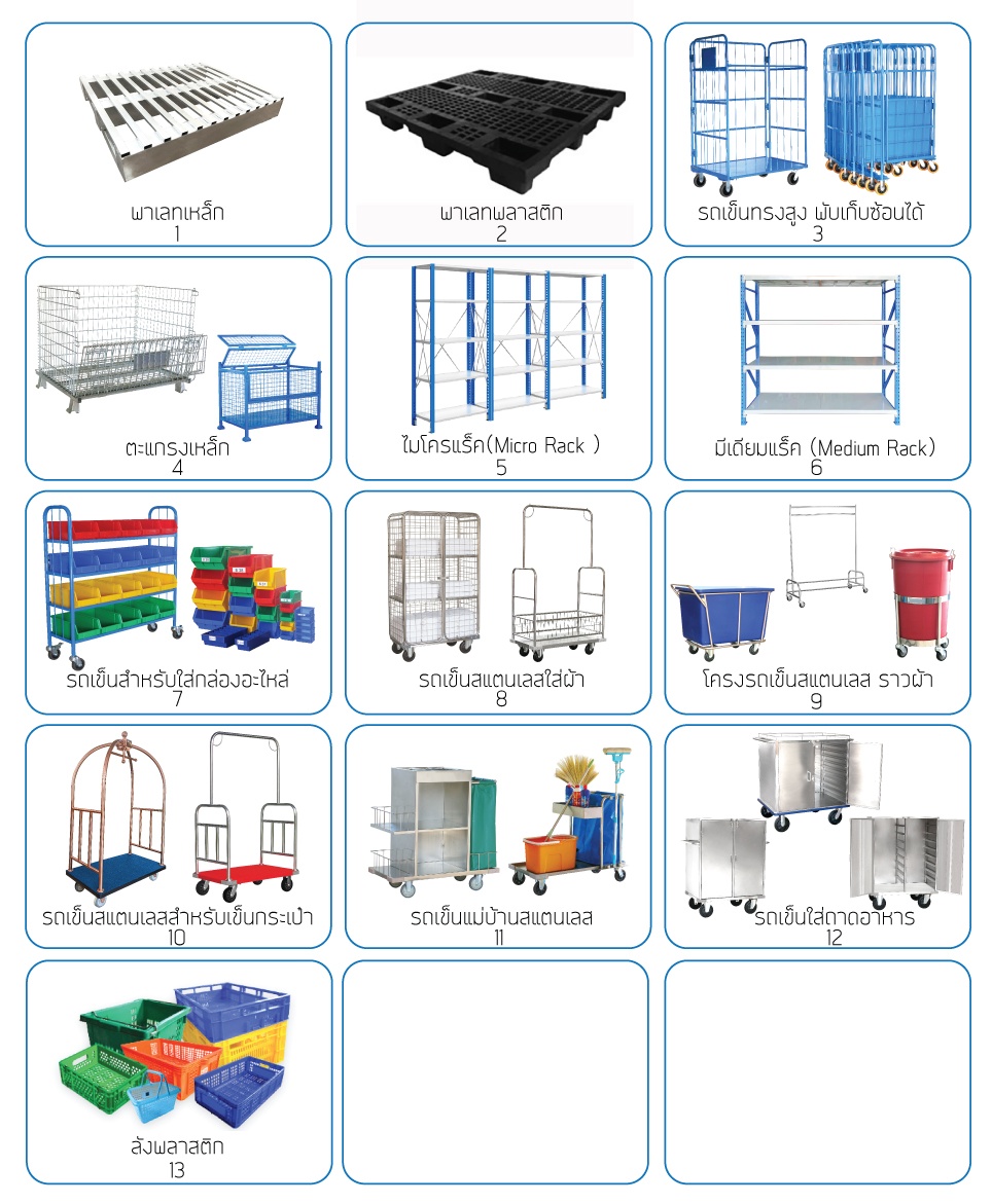 เราเป็นโรงงานผลิต สแต็กกิ้งพาเลท (Stacking Pallet) พาเลทเหล็ก (Steel Pallet)พาเลทวางซ้อน พาเลทวางซ้อนมีผนังกันของตก รวมถึงงานออกแบบสแต็กกิ้งพาเลส (Stacking Pallet) หรือพาเลทเหล็กแบบซ้อนได้ รถเข็นเหล็ก (Trolley) รถเข็นสแตนเลส ตามความต้องการของลูกค้า รับผลิตสินค้าตามที่ลูกค้าต้องการ ด้วยประสบการณ์ด้านการผลิตมากกว่า 30 ปี จึงทำให้ใช้งานได้จริง ทางบริษัทออกแบบด้วยโปรแกรมที่สามารถคำนวณการรับน้ำหนักต่างๆ ของสินค้าได้จริง และเลือกใช้วัสดุเหล็กที่มีคุณภาพได้มาตรฐานจากโรงงานผลิต โรงงานเราใช้เครื่องจักรทันสมัยในการผลิตที่ทันสมัยจึงทำให้ได้งานหรือสินค้าที่มีคุณภาพและได้มาตรฐาน